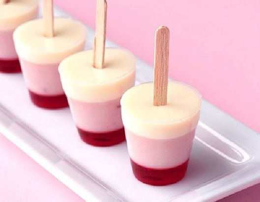 6. Mételos en el freezer durante al menos 15 minutos. De esta manera su congelamiento será solo parcial y podrás introducir palillos que queden fijos en el centro de los vasos.